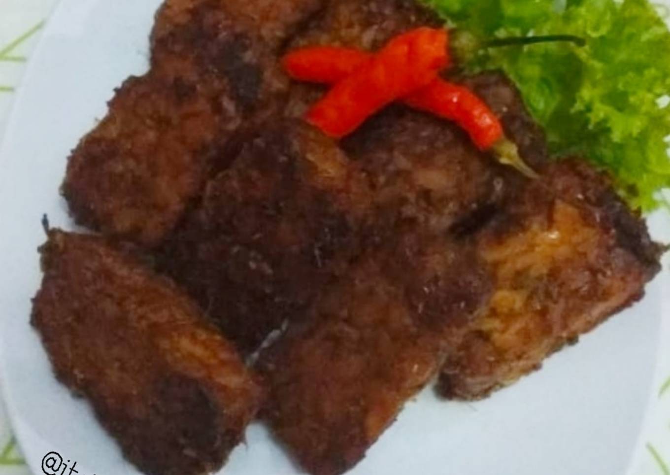 - Siapkan semua bahan yg diperlukan, potong" tempe ±2cm (sesuai selera). Susun tempe dan tahu dlm wajan yg sudah diberi daun salam sblmnya, haluskan semua bumbu kecuali asem dan daun salam